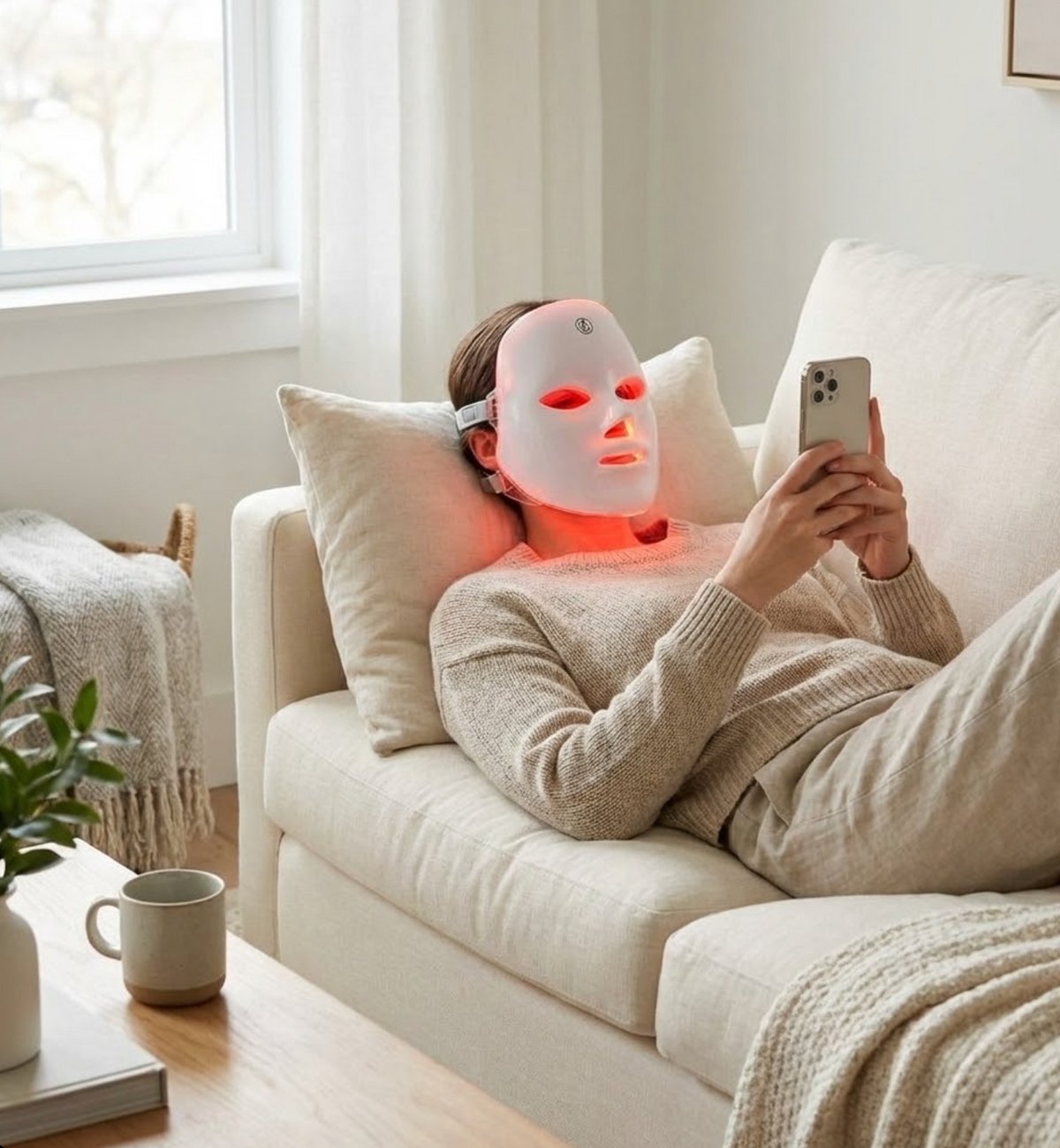 Use the LED mask to deliver targeted light therapy to acne-prone areas.